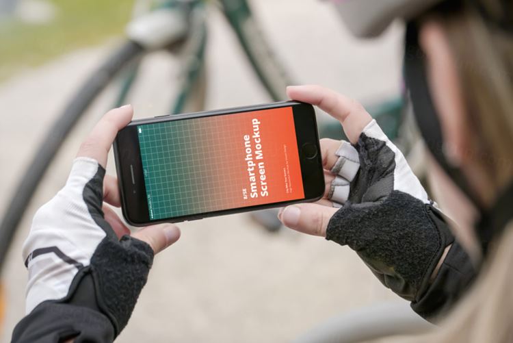 手持手机骑行自行车旅游移动APP提案样机UI界面素材 Phone Mockup SE Bike Tour Scenes