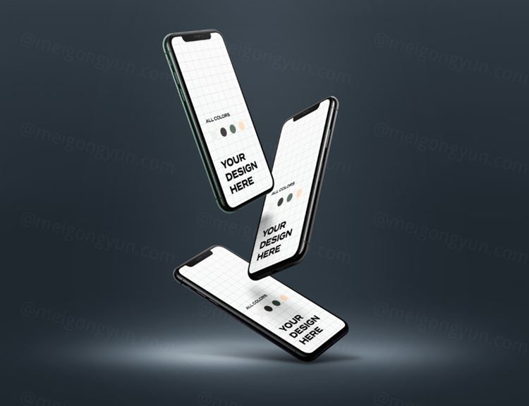 图穷联素材库 » 最新智能手机iPhone飘浮场景APP UI界面设计提案样机模板素材