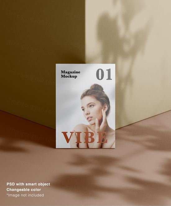 图穷联素材库 » 高端杂志画册封面带高级植物阴影设计提案样机PSD模板 Realistic magazine side view