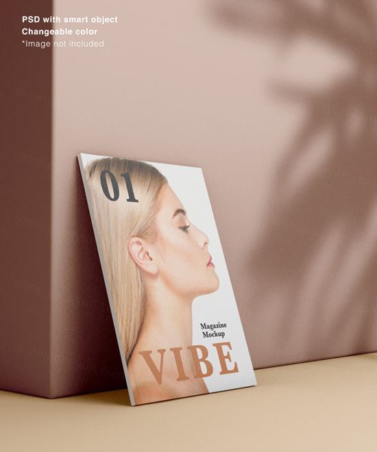 图穷联素材库 » 高端杂志画册封面带高级植物阴影设计提案样机PSD模板 Realistic magazine side view