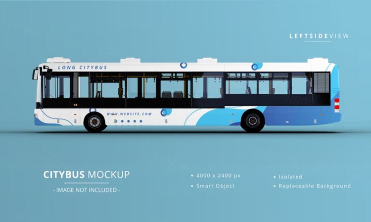 图穷联素材库 » 超长城市公交车公共汽车车身广告贴图展示样机模板 Long city bus mockup