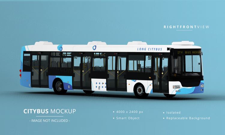 图穷联素材库 » 超长城市公交车公共汽车车身广告贴图展示样机模板 Long city bus mockup