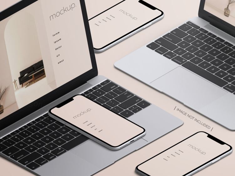 图穷联素材库 » 高品质欧美极简主义苹果手机iPad笔记本网页UI设计展示样机PSD模板素材