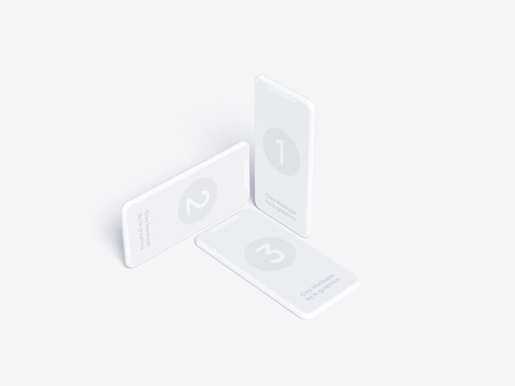 苹果手机白模UI界面贴图样机模板免费下载 Three iPhone Clay Mockups
