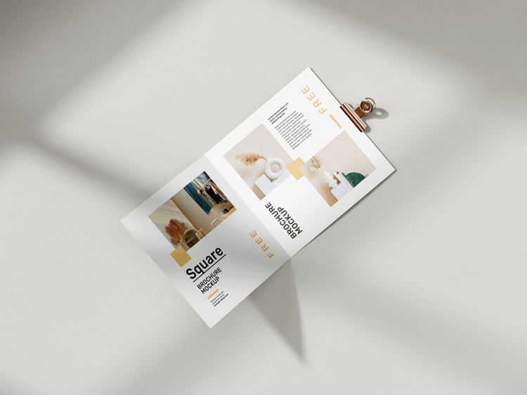 图穷联素材库 » 折叠方形小册子宣传册设计提案样机PSD模板 Folded Square Brochure Mockup