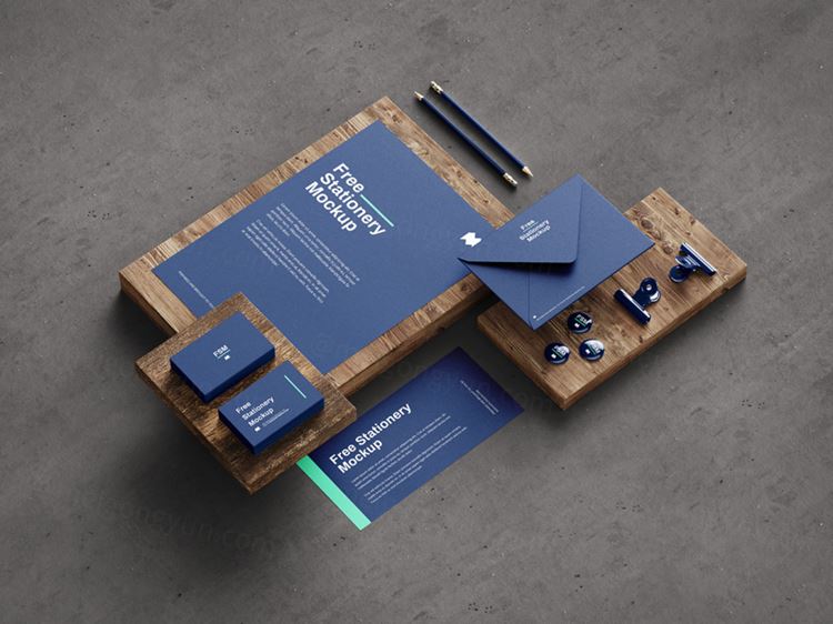 图穷联素材库 » 高品质木质混凝土品牌VI设计提案样机PSD模板 Stationery mockup
