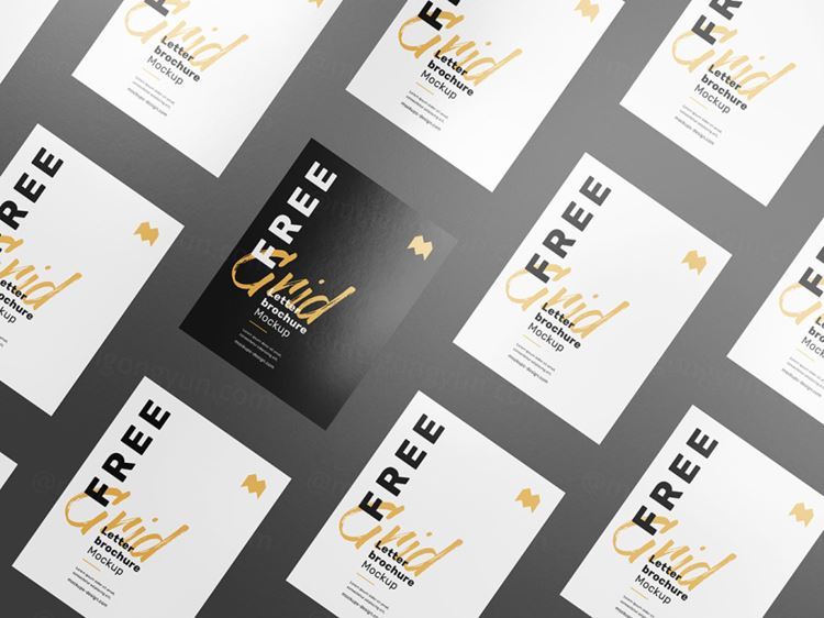 图穷联素材库 » 单页宣传单平铺海报设计展示样机模板 Grid Letter Brochure Mockup