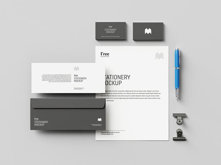 图穷联素材库 » 文具信封名片A4纸品牌VI设计提案样机PSD模板 US stationery mockup