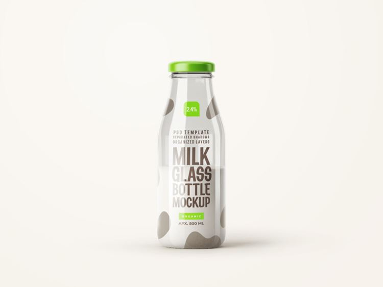 鲜奶牛奶羊奶透明玻璃杯品牌包装设计样机PSD模板 Fresh milk glass mockup