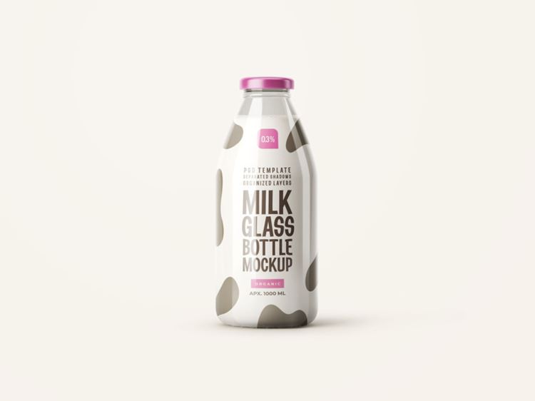 鲜奶牛奶羊奶透明玻璃杯品牌包装设计样机PSD模板 Fresh milk glass mockup