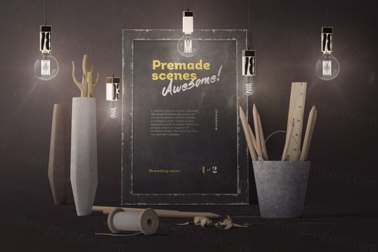 灯泡光照场景木质复古做旧相框样机PSD模板 Frame With Bulbs Mockup Front View