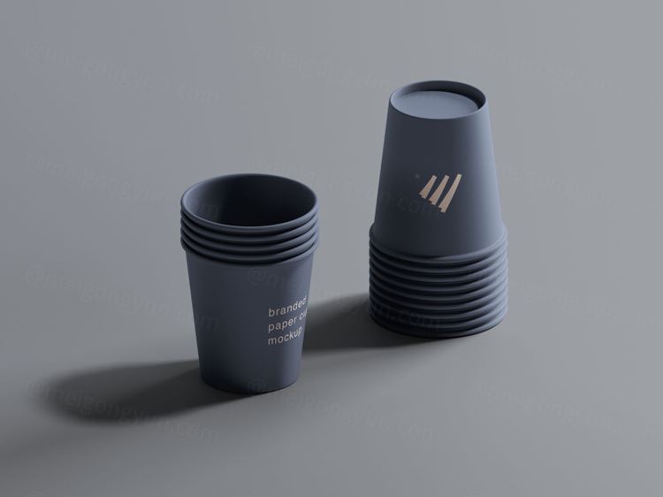 堆叠摆放整齐的咖啡杯纸杯包装品牌设计贴图样机模板 Stacked Paper Cups Mockup