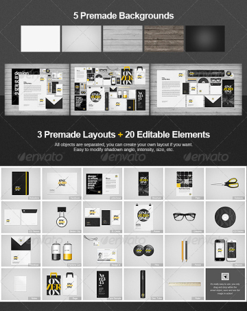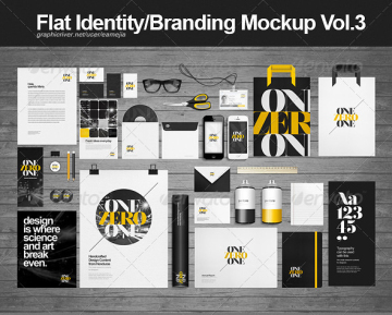 图穷联素材库 » 时尚现代风格黑色系列VI提案贴图Flat Identity and Branding Mock-up