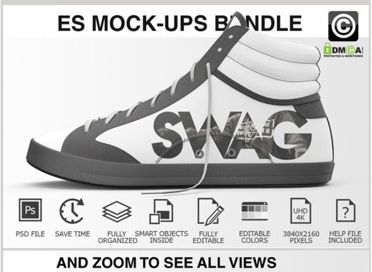 这款鞋样机 - 运动鞋样机包可让您快速将设计和布局展示到数码照片真实展示中。