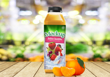 创建一个漂亮的果汁瓶样机,非常适合您的广告,网站或任何设计演示文稿用于您的客户。