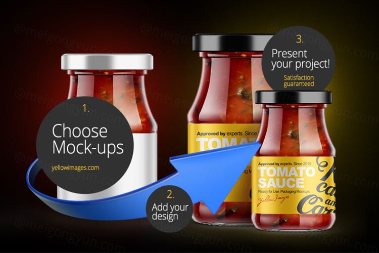 图穷联素材库 » 调味瓶模型PSD贴图模板Glass Jar with Sauce Mockup Vol010