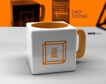 图穷联素材库 » 创意方形形状杯子模型PSD贴图模板Cube Mug Mockup Vol018