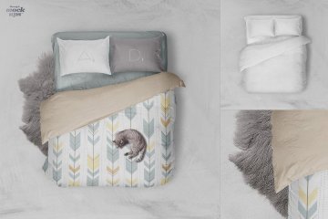高质量床上用品模型PSD贴图模板Bed Linen Mockup