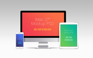 一包流行的苹果设备在中模拟模板。私营部门司格式。所有这些实体模型都是精心制作的,并结合在一起,呈现出多种不同的设备。这些设备包括iMac 27″、iPad Pro 9.7″、iPhone 6s Plus。这些。PSD文件非常容易使用,您可以使用智能对象层添加自己的设计。