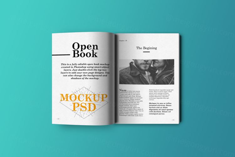 图穷联素材库 » 开放式书籍杂志模型PSD贴图模板Open Book Mockup