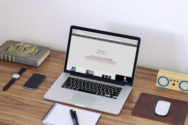 图穷联素材库 » 室内场景电脑模型PSD贴图模板Macbook Workspace Mockup
