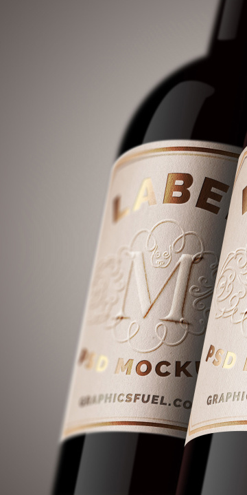 图穷联素材库 » 酒瓶标签模型PSD贴图模板Wine Bottle Label Mockup PSD