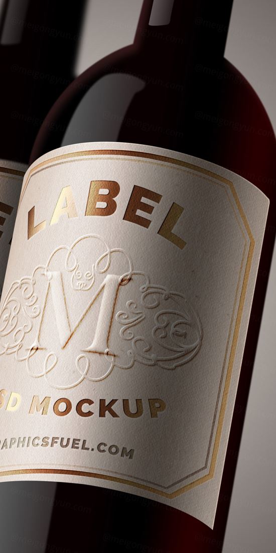 酒瓶标签模型PSD贴图模板Wine Bottle Label Mockup PSD