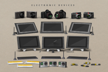 Electronic devices (Apple iPhone, iPad, iMac, Macbook Air etc.; Wacom Intous, photo cameras, etc.)