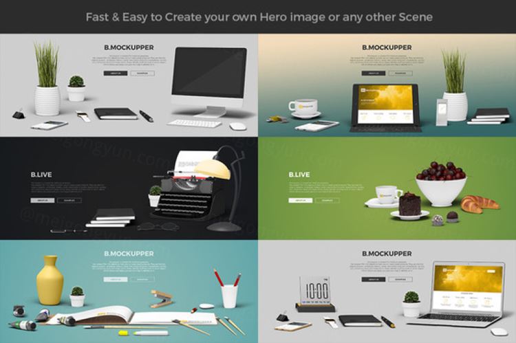 Mockupper : Front view 4K - 100+ High resolution and quality mockup objects (most of them are in 3 positions) scene generator which will help you to create different images such as Product promo, Identity, Hero images and other compositions.