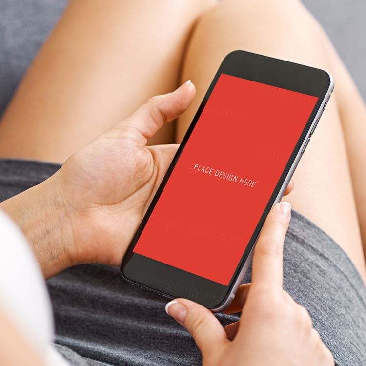 图穷联素材库 » Girl holding iPhone Mockup 美女玩手机场景贴图模版