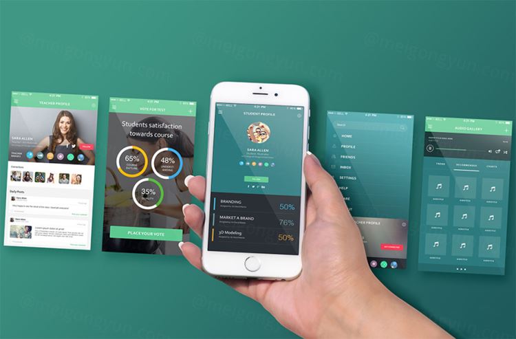 高分辨率iPhone 6S透视屏幕模型,展示您的UI / UX、应用程序和网页设计。具有5个可定制的iPhone 6S屏幕,其中一个显示手持位置的完整设备。这个PSD模型还允许你根据你的设计要求编辑背景、阴影和反射。
