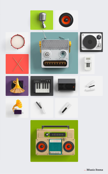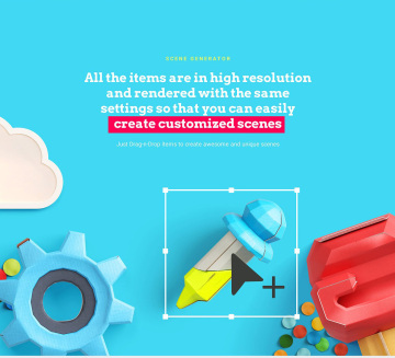 All the items are in high resolution and rendered with the same settings so that you can easily create customized scenes. Just drag-n-drop.
