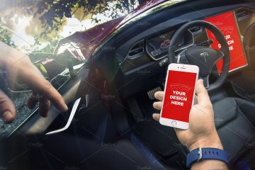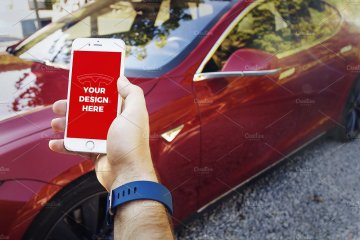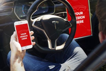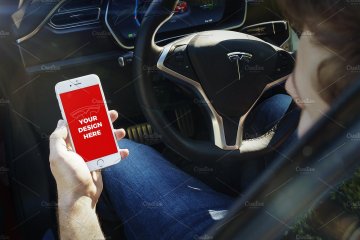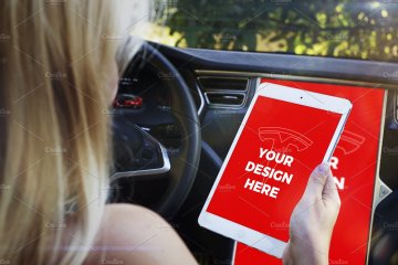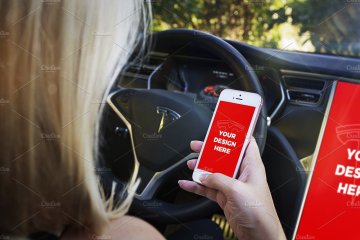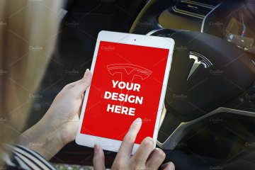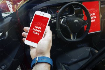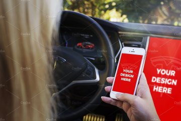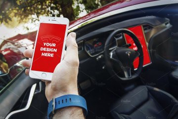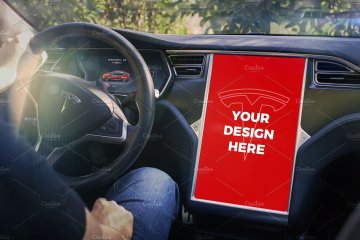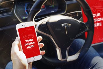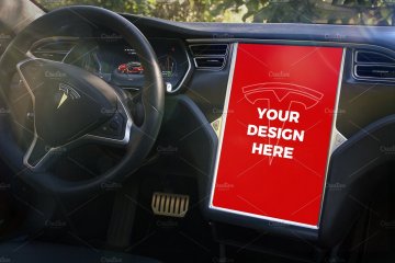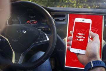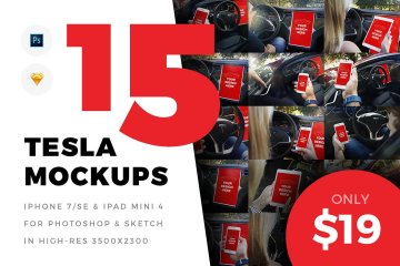 With this unique mockups bundle you can present your projects like nobody else. Enjoy 15 premium templates with iPhone 7, iPhone SE & iPad Mini 4 inside the beautiful Tesla Model S. You can also import your design into its large 17" display.