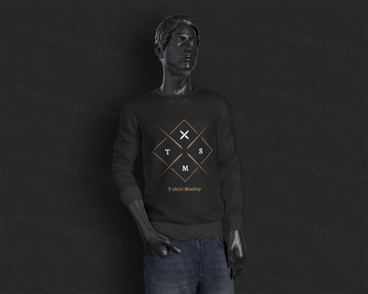 男士长袖针织衫模型PSD贴图模板Free Long Sleeves T-Shirt Mockup