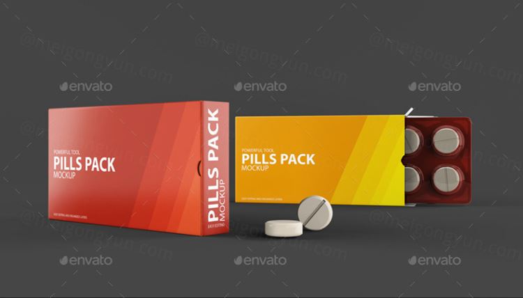 图穷联素材库 » Pills Package Blister Box Mock-up 药盒包装模型
