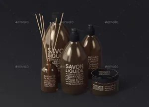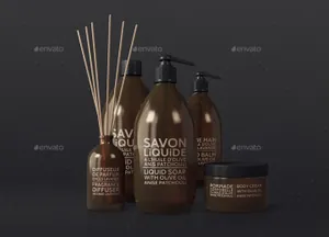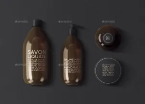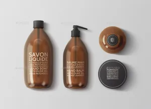 琥珀色化妆品包装模型PSD贴图模板Natural Cosmetic Packaging MockUps3