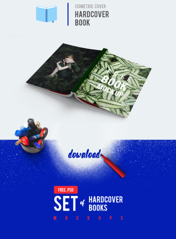 图穷联素材库 » 精装书模型PSD贴图模板Hardcover Book Free Mockup Set from CyanTriangle