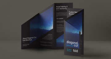 异性斜切折页小册子模型PSD贴图模板Diagonal Psd Tri Fold Mockup US A4