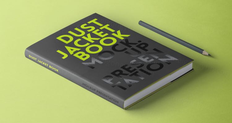 等角透视效果防尘套书模型PSD贴图模板Psd Dust Jacket Book Mockup