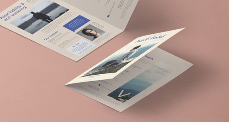 透视半折叠小册子模型PSD贴图模板Half Fold Psd 8-5x11 Inch Mockup