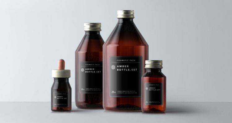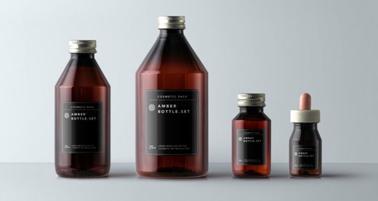 琥珀色护肤品包装设计PSD贴图模板Amber Bottles Cosmetic Packaging