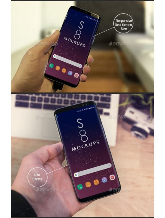 图穷联素材库 » 手拿三星Galaxy S8 plus手机PSD贴图S8 Galaxy Modern Android Mockups