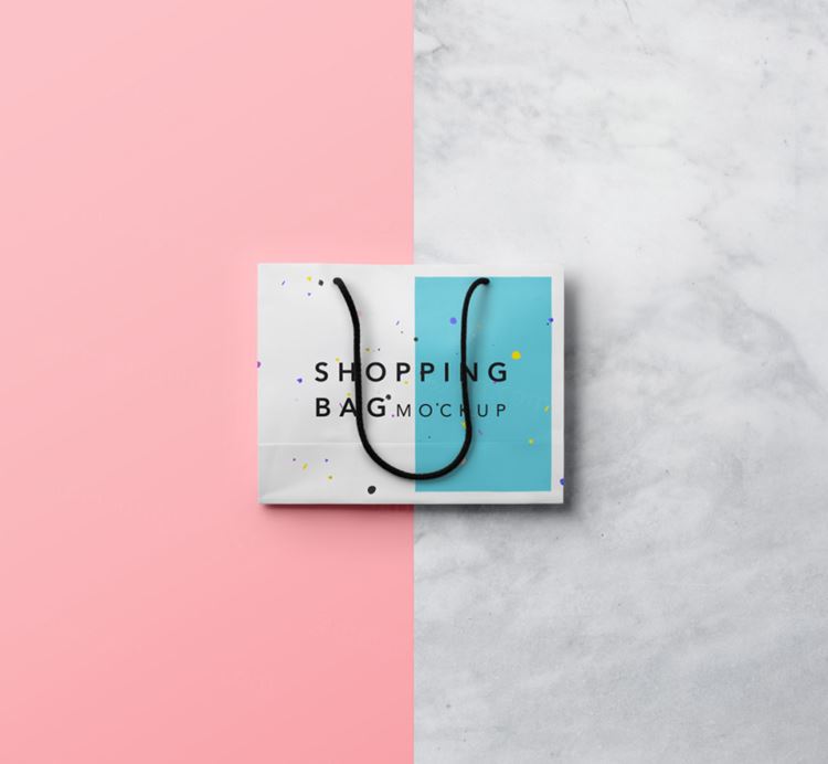 这是一个非常经典的PSD购物袋模型,上面有两个把手位置。我们还包括一个优雅的大理石纹理,用于最初展示你的品牌设计。