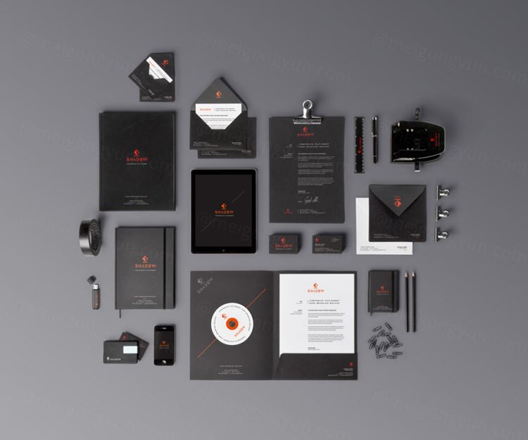 黑色主题VI整套提案贴图样机PSD模板Stationery Branding Mock Up Vol022