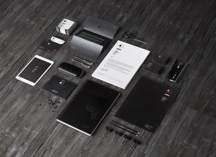 图穷联素材库 » 黑色主题公司VI提案贴图PSD模板Stationery Branding Mock Up Vol103