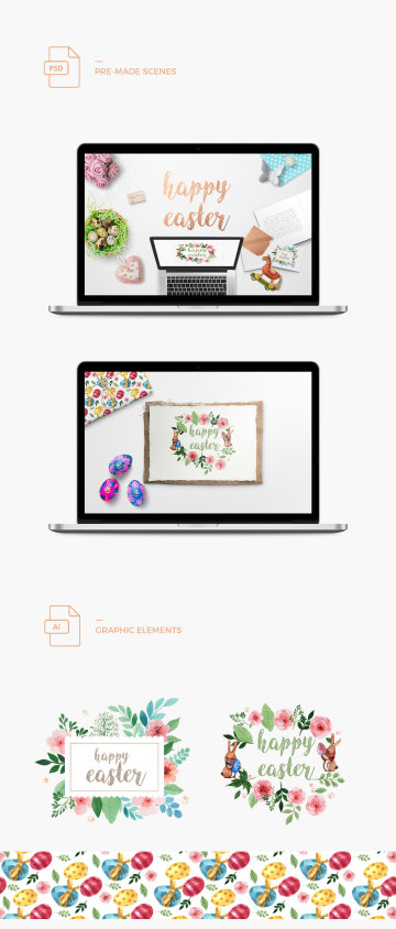 复活节元素场景模拟Happy Easter Mockup Scene Creator Vol012