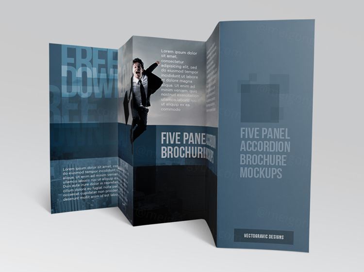 更多的小册子模型在这里分享,免费提供5个面板手风琴小册子模型,尺寸为8.5英寸x14英寸。这是一个简单的模型,由三个PSD模型文件组成,帮助你展示你的设计项目,看起来更有趣。抓住这个免费的模型,不要忘记分享。你可以在这里查看这个模型的完整集合。