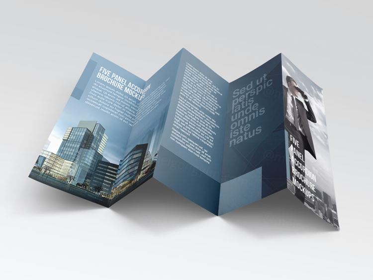 图穷联素材库 » 宣传折页贴图样机PSD模板Five panel accordion brochure mockups Vol052