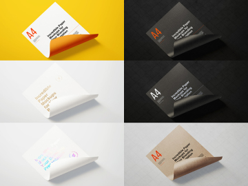 弯曲A4纸质品牌模型PSD模板Paper Branding Mockup