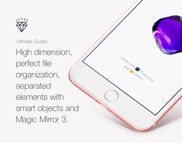 遇见新英雄——精心制作的iPhone 7 Plus实体模型。七种令人敬畏的颜色,49部手工制作的iphone,花了100个小时。我们想做的就是展示你的设计有多完美,与设备的美丽结合在一起。Photoshop & Magic Mirror 3中的smart objects在草图中,您将轻松快速地创建演示文稿!